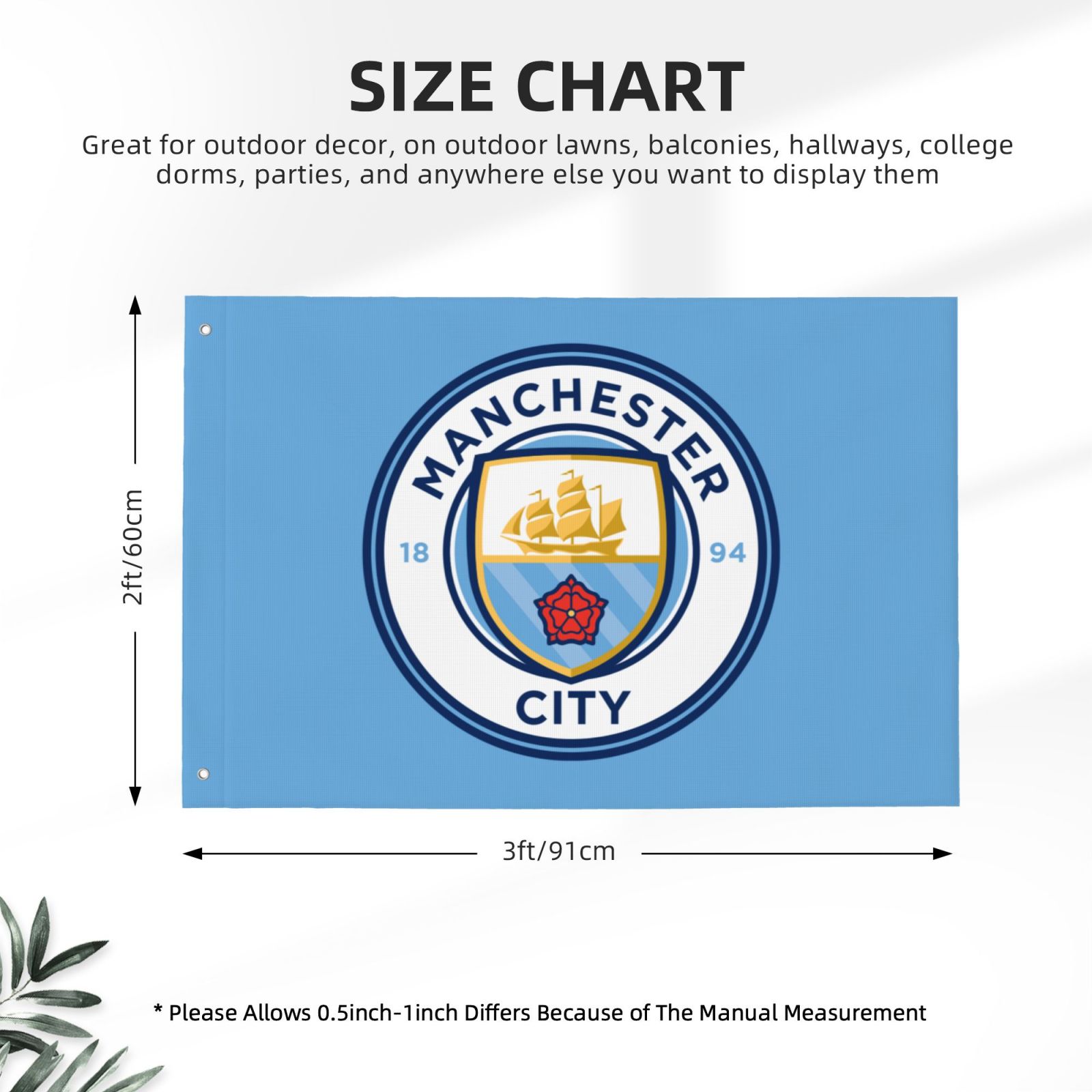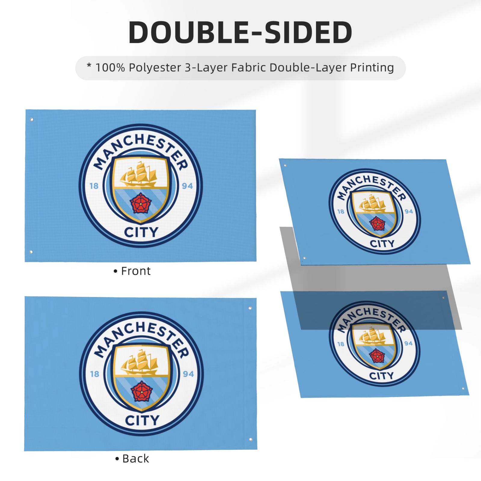 - Manchester City Double Sided Flag 2x3FT DSF3444