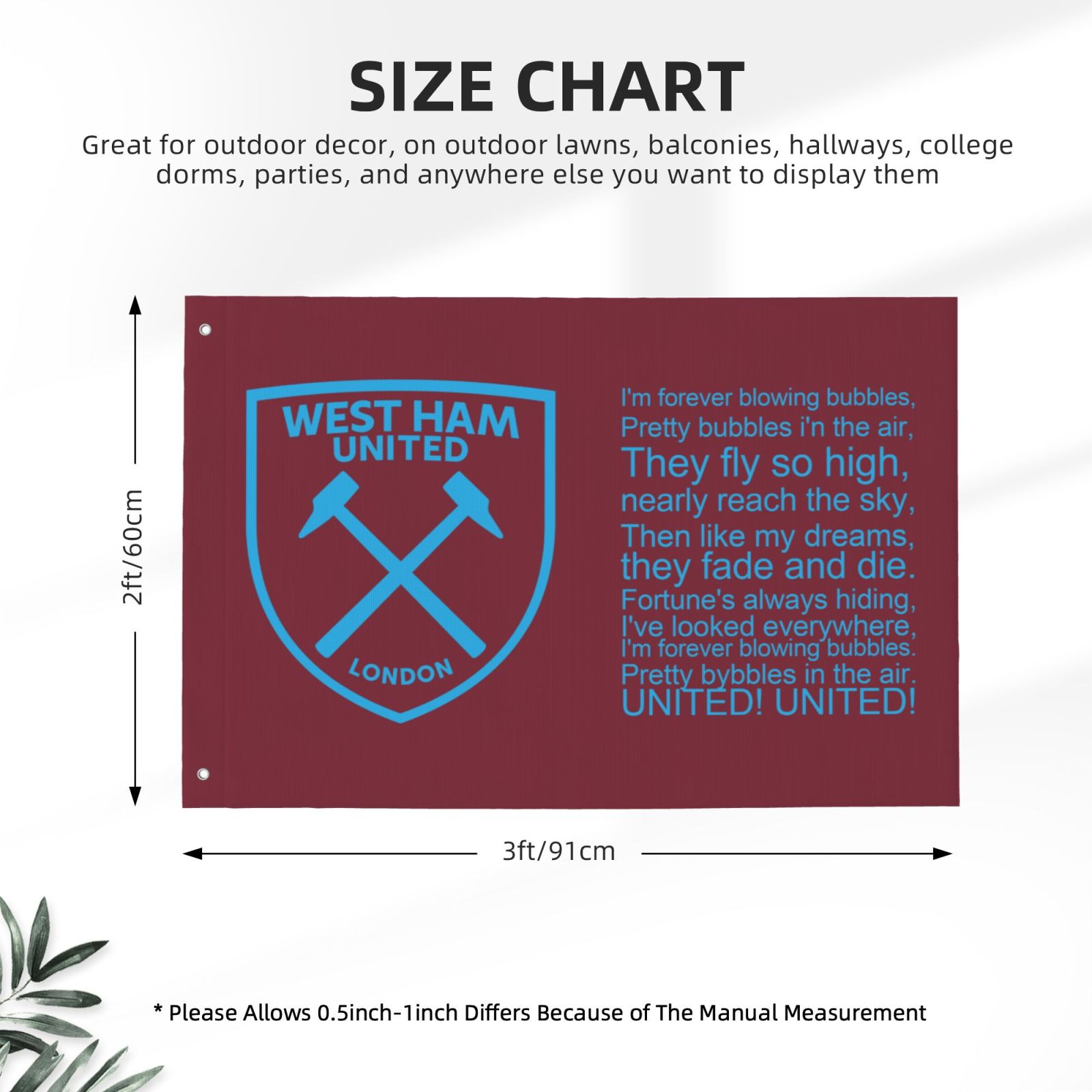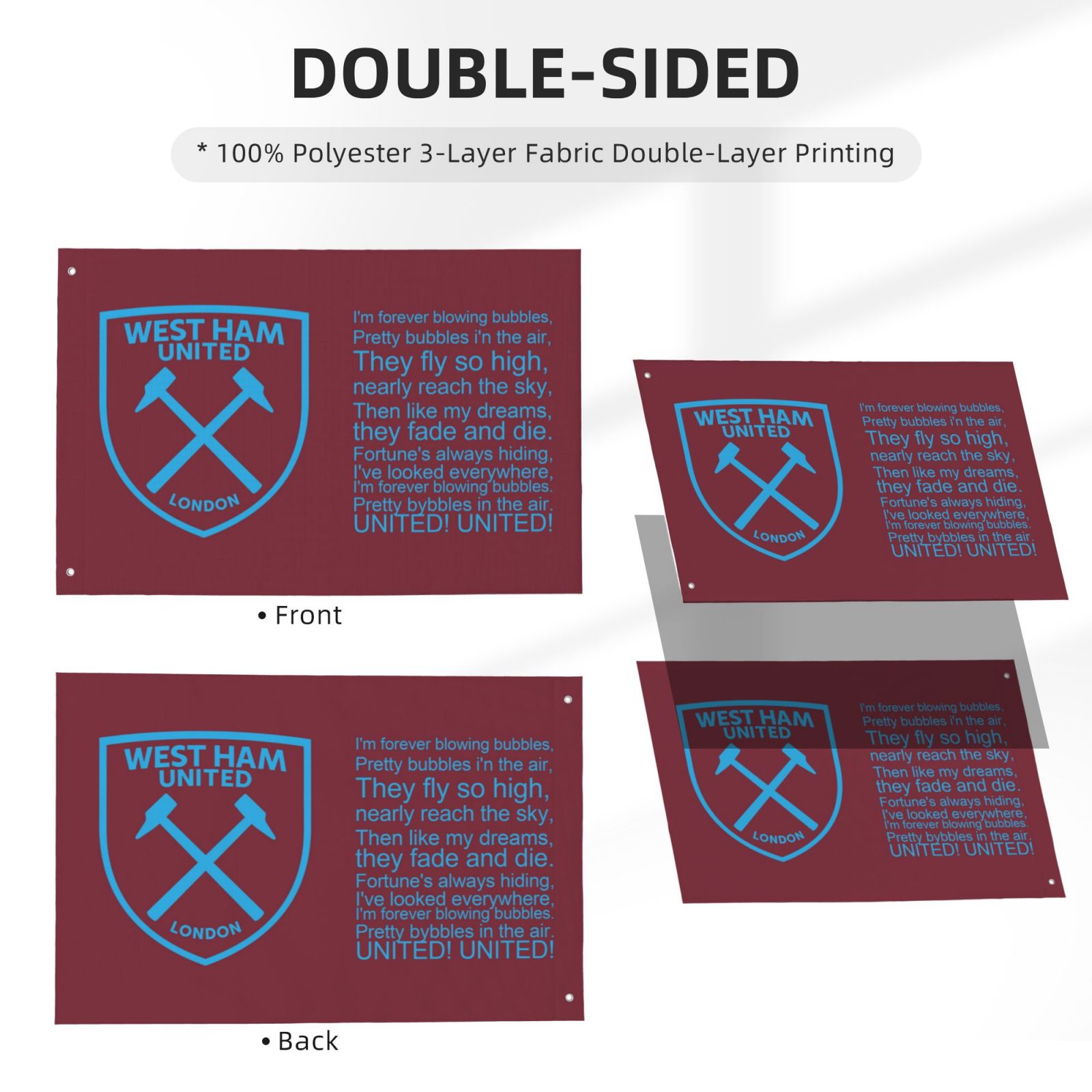 - West Ham United Double Sided Flag 2x3FT DSF3501